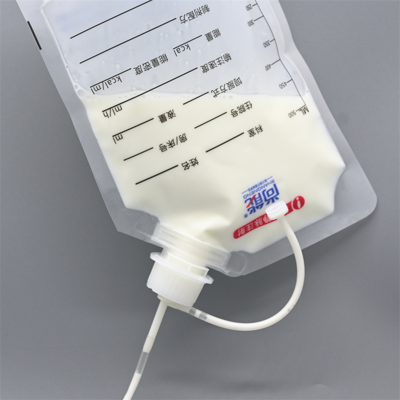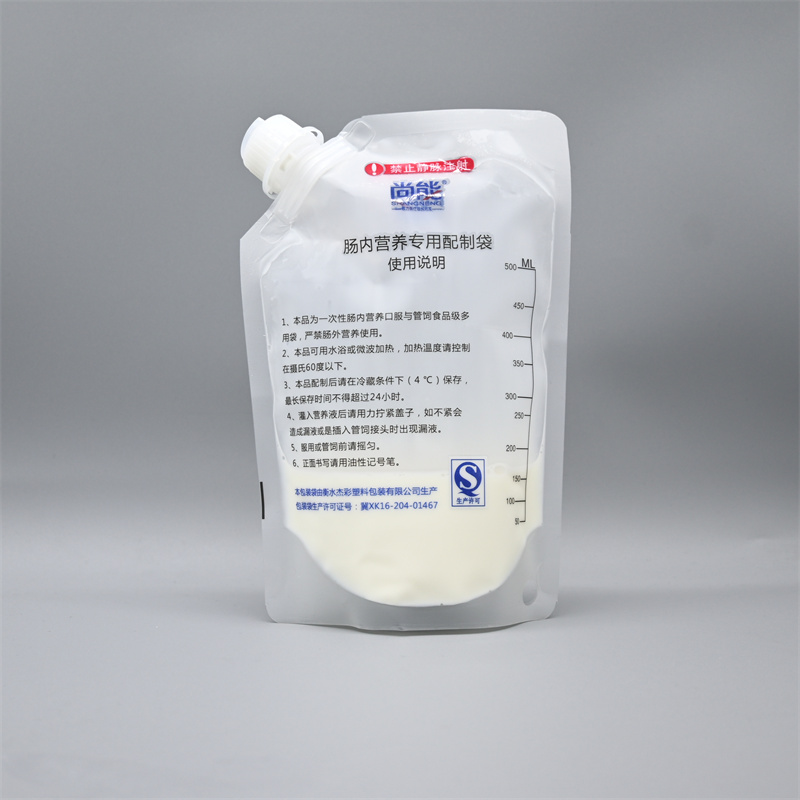 大口径肠内营养制剂袋复合辊的压力不足或辊上有杂质。复合角度不当。应仔细调整,使薄膜尽量按切线方向进入。
